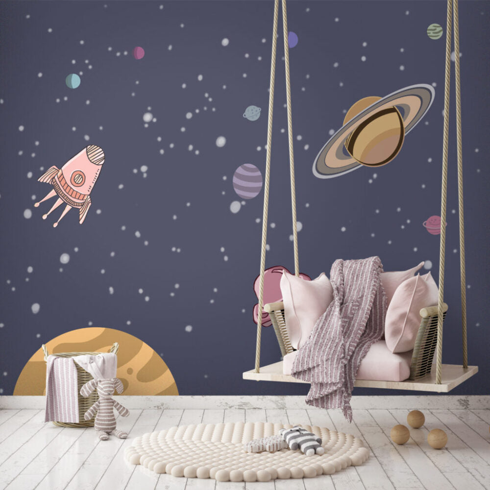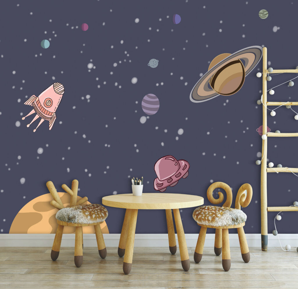 Uzay Mekiği ve Gezegen Desenli 3D Duvar Kağıdı | Duvar Kağıdı Marketi Duvar Kağıdı Ürün Bilgisi
