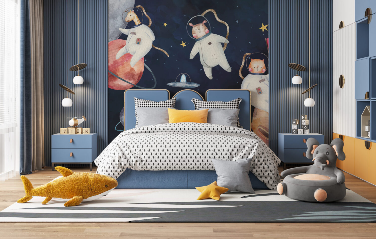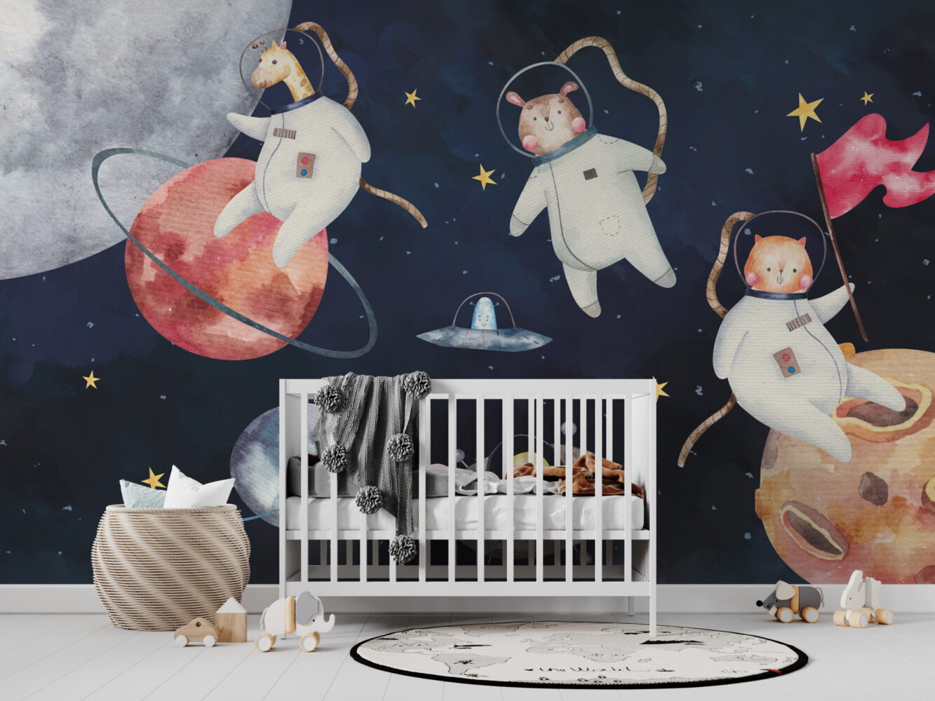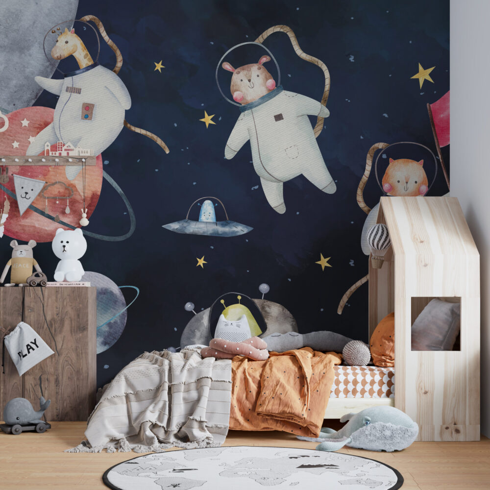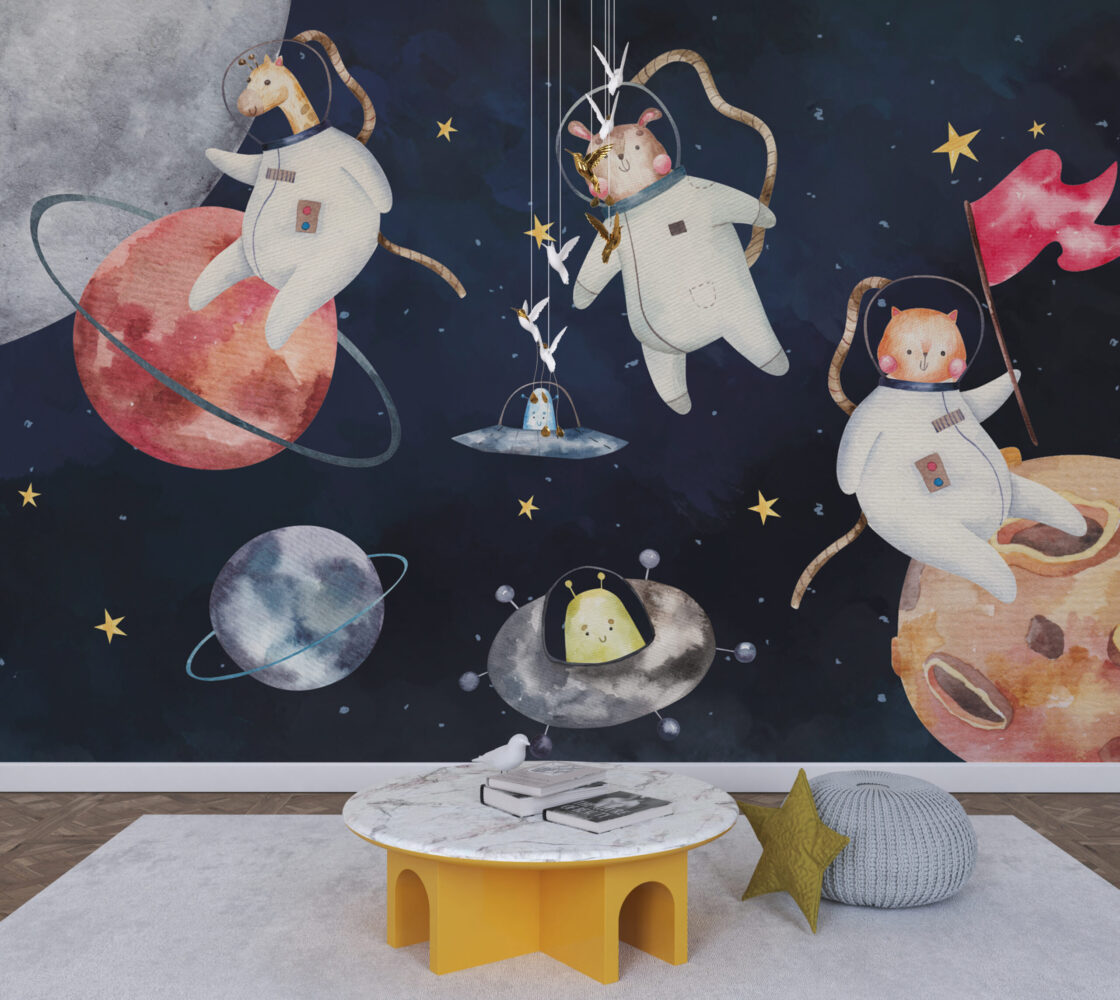 Uzay'da Gezen Hayvan Astronotlar Duvar Kağıdı üretimi, uygulanmasını isteyeceğiniz boyut ve konumuna uygun olarak talepleriniz doğrultusunda size özel imal edilir.
