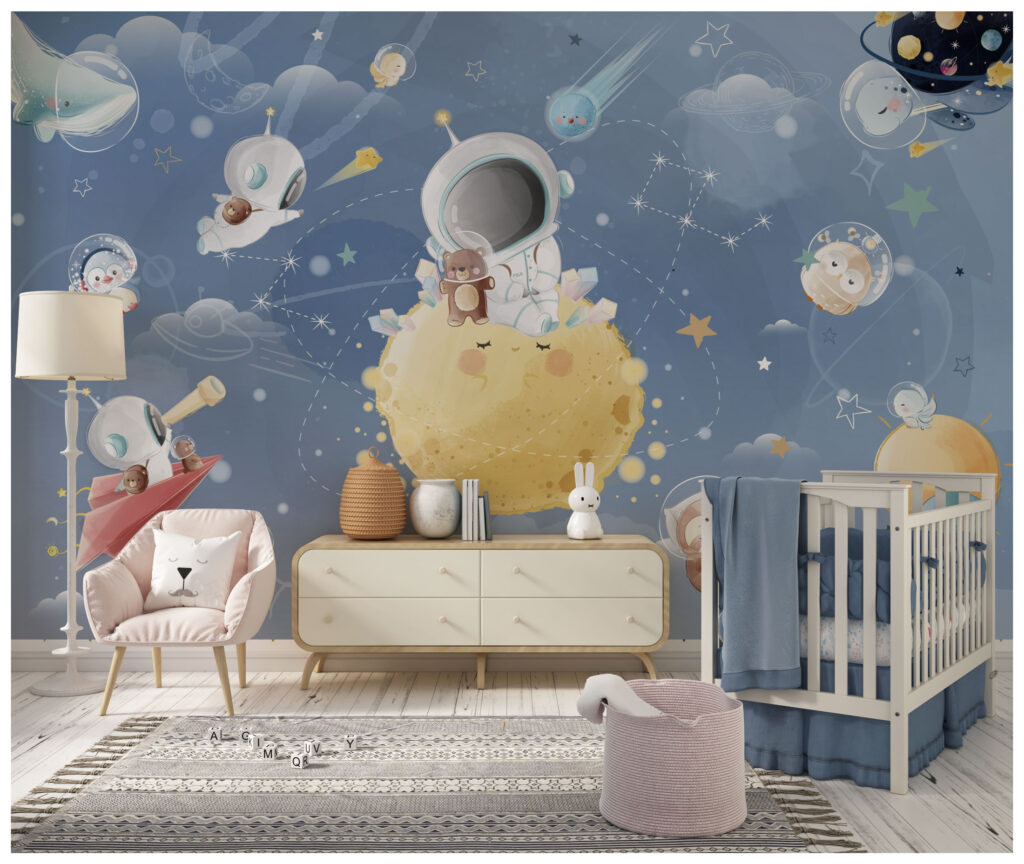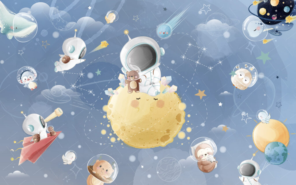 Uzaydaki Ayıcıklar Temalı 3D Duvar Kağıdı | Duvar Kağıdı Marketi üretimi, uygulanmasını isteyeceğiniz boyut ve konumuna uygun olarak talepleriniz doğrultusunda size özel imal edilir.