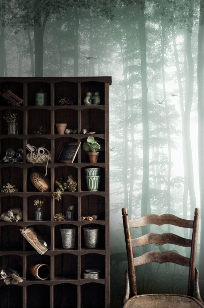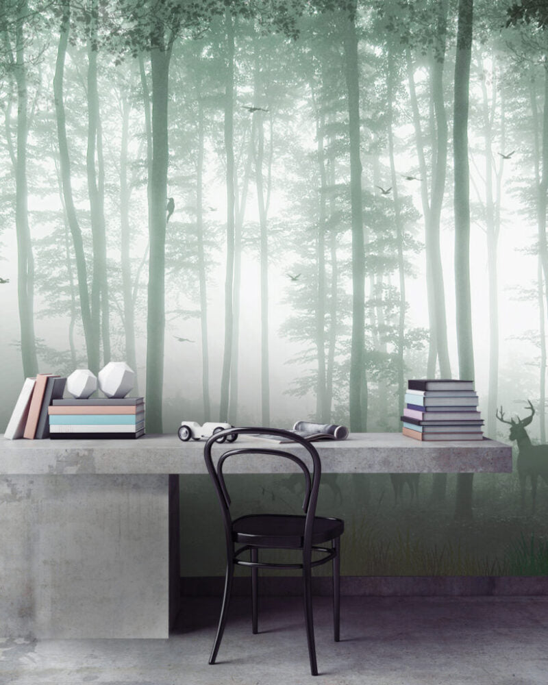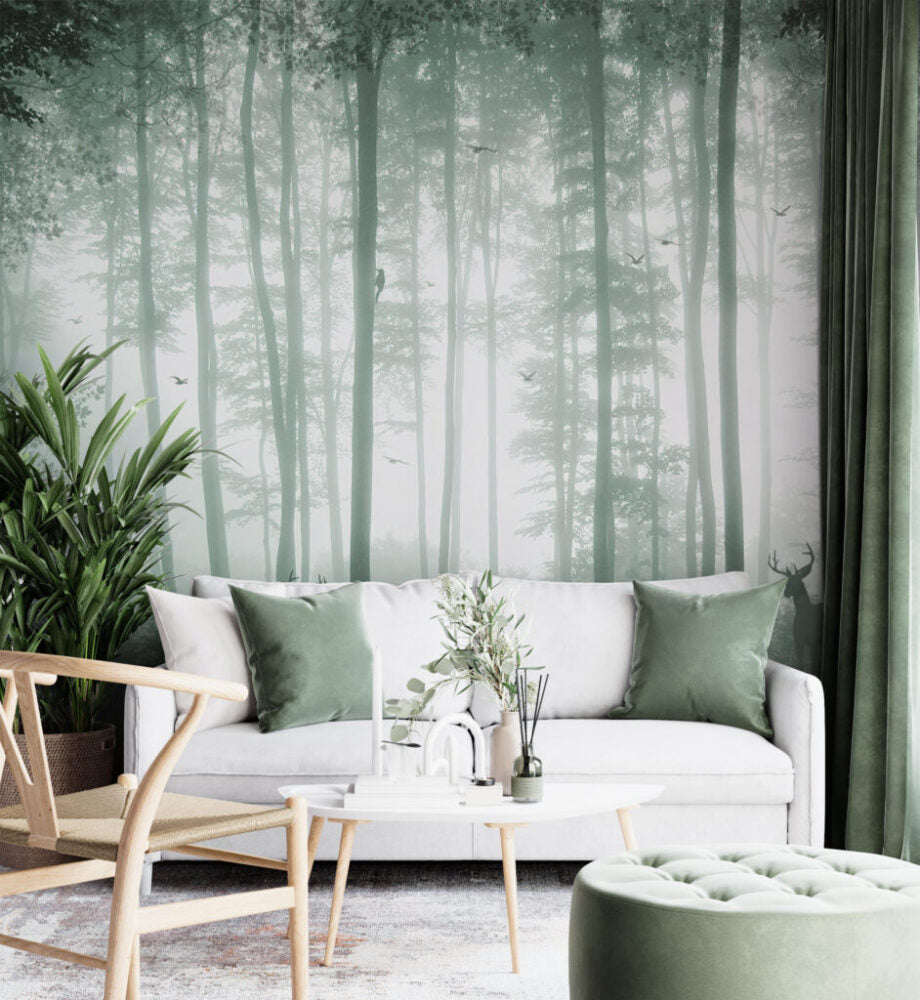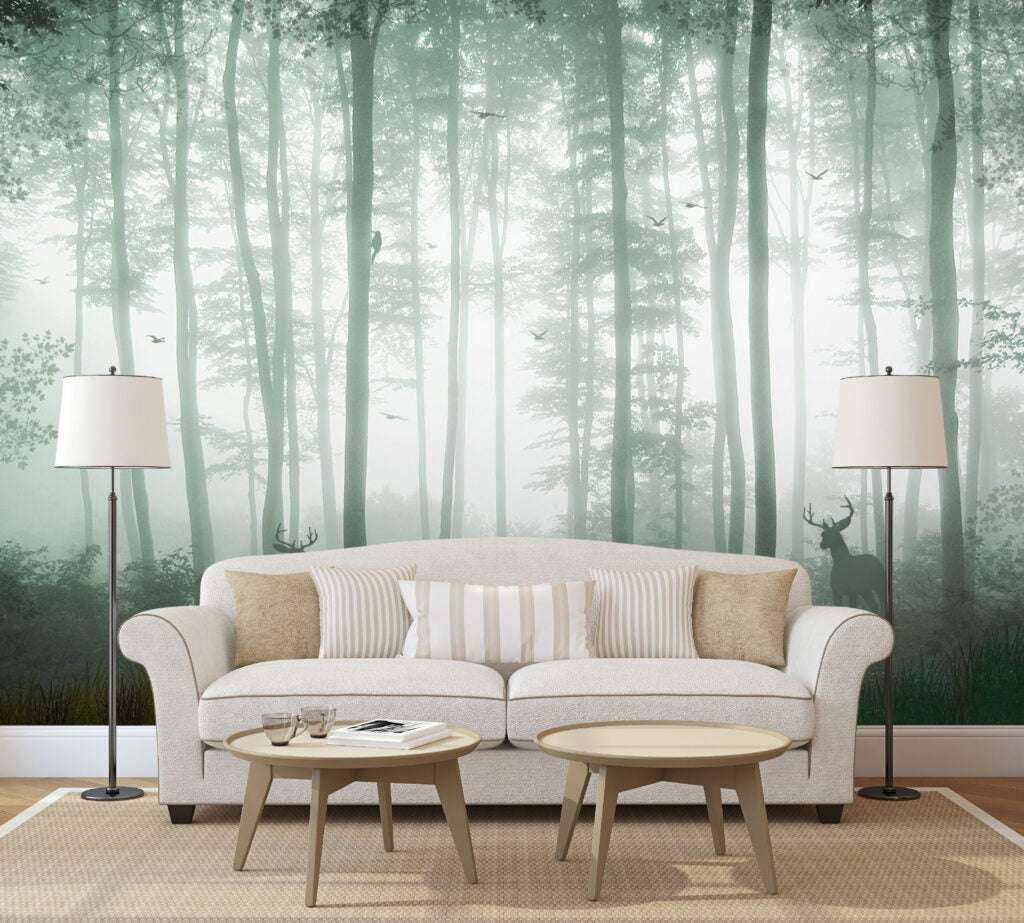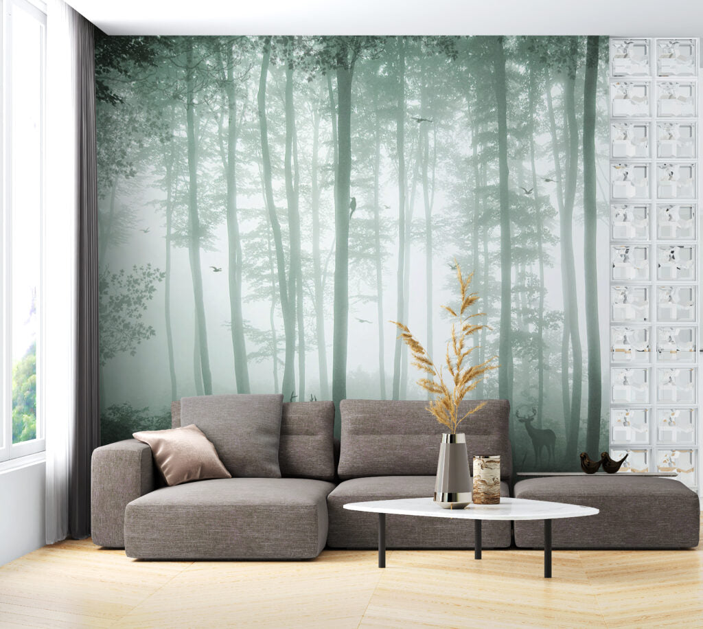 Uzun Ağaçlı Orman Desenli 3D Duvar Kağıdı