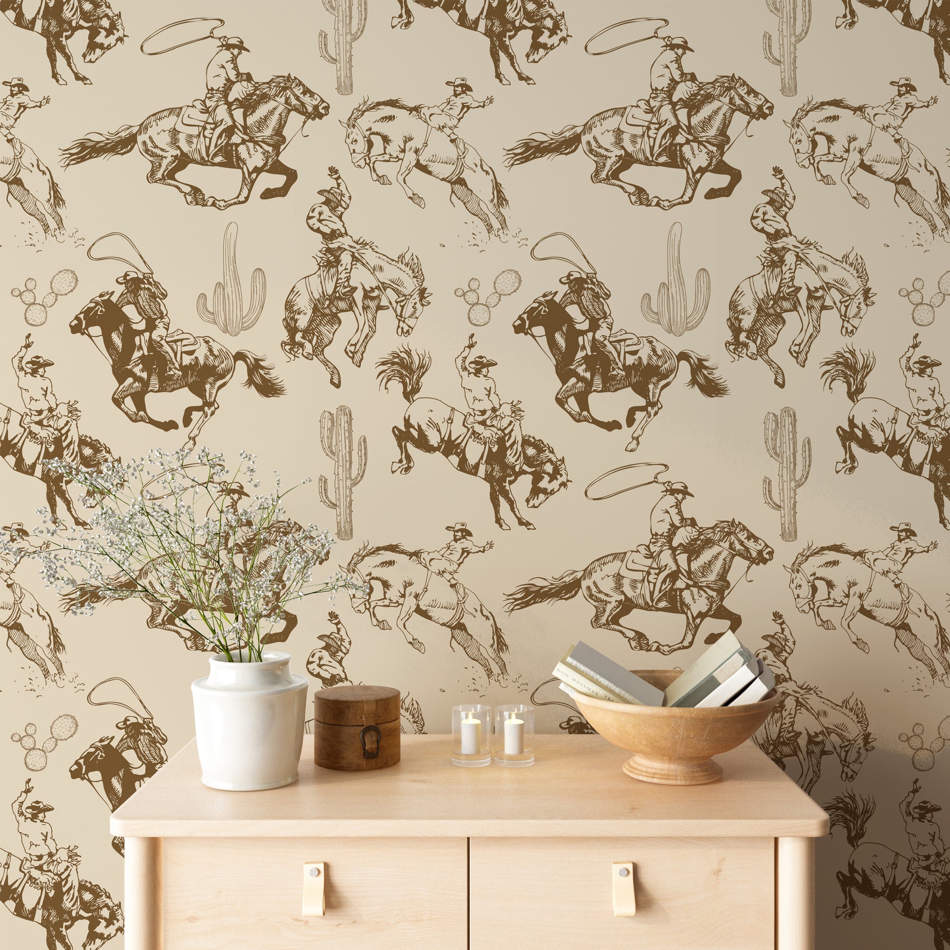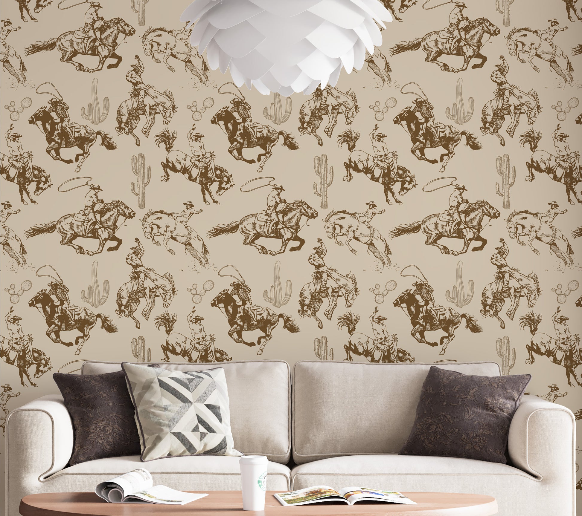 Vahşi Batı Kovboy Desenli Duvar Kağıdı