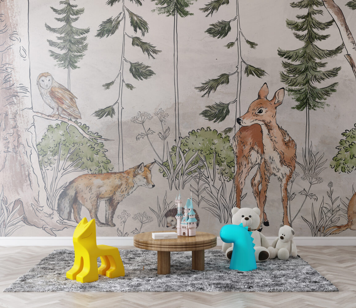 Vahşi Orman Çizgisel Hayvanlar Duvar Kağıdı Duvar Kağıdı Ürün Bilgisi