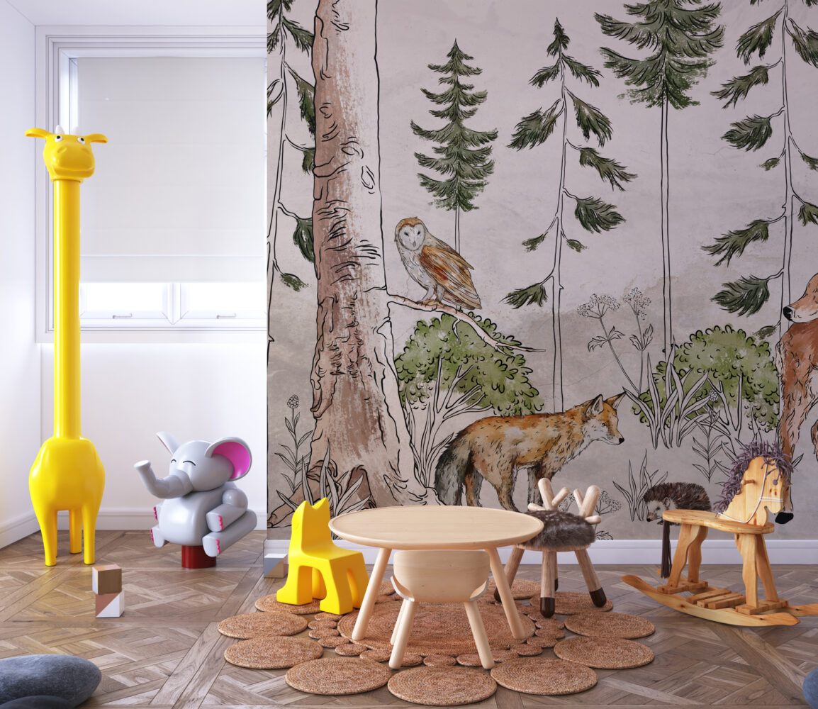 Vahşi Orman Çizgisel Hayvanlar Duvar Kağıdı üretimi, uygulanmasını isteyeceğiniz boyut ve konumuna uygun olarak talepleriniz doğrultusunda size özel imal edilir.
