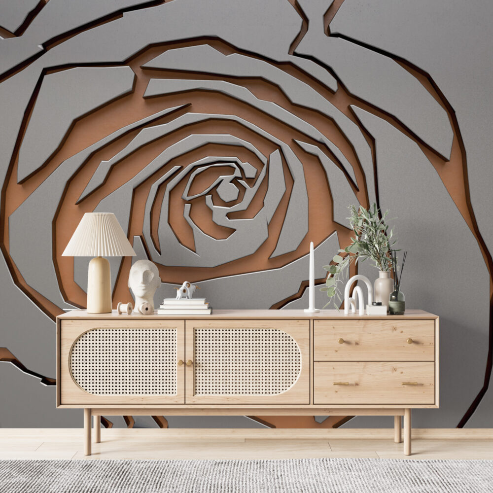 Vizon Renklerde Dekupe Gül Deseni Duvar Kağıdı