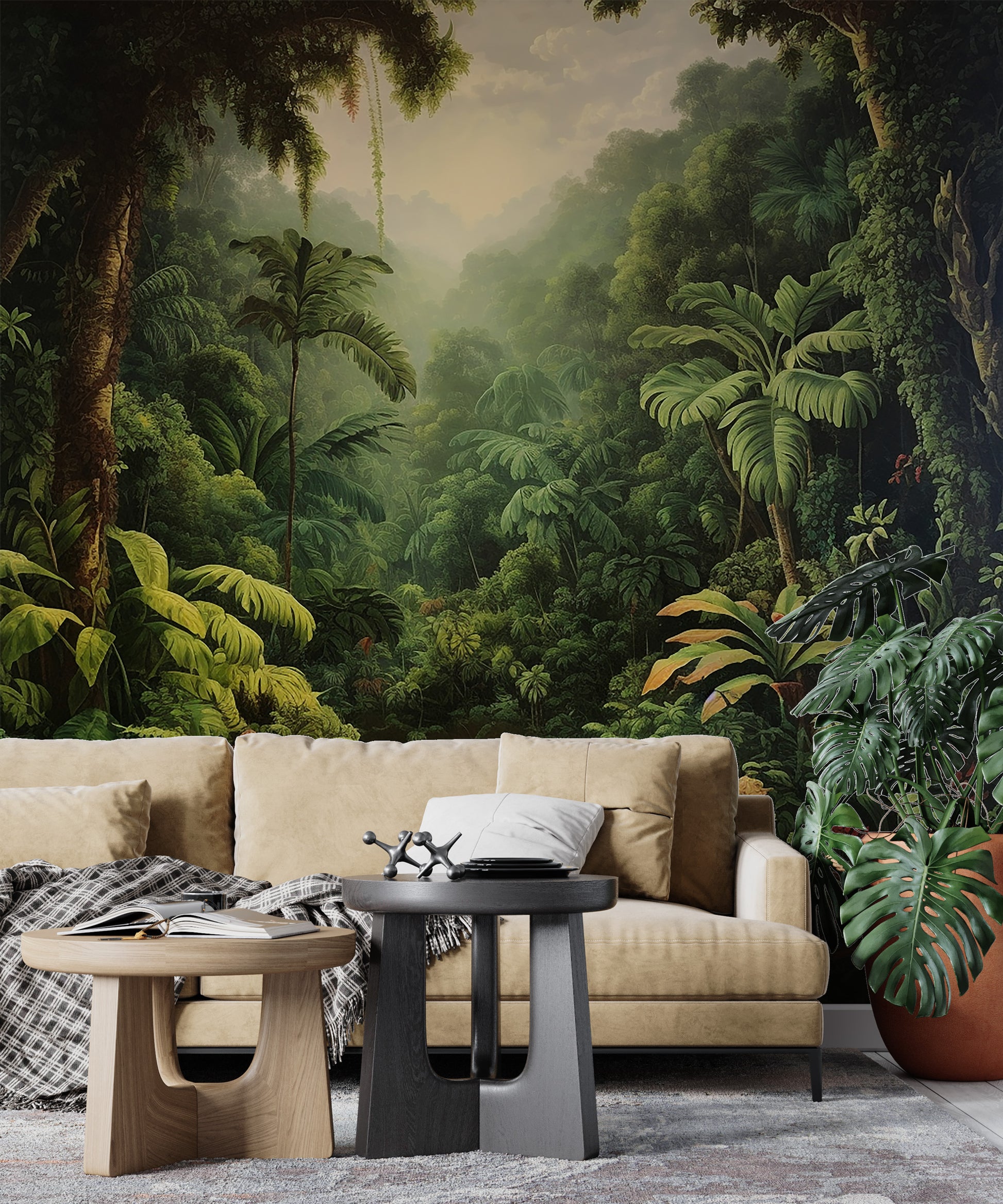 Yağmur Ormanın da Tropikal Ağaçlar Duvar Kağıdı üretimi, uygulanmasını isteyeceğiniz boyut ve konumuna uygun olarak talepleriniz doğrultusunda size özel imal edilir.