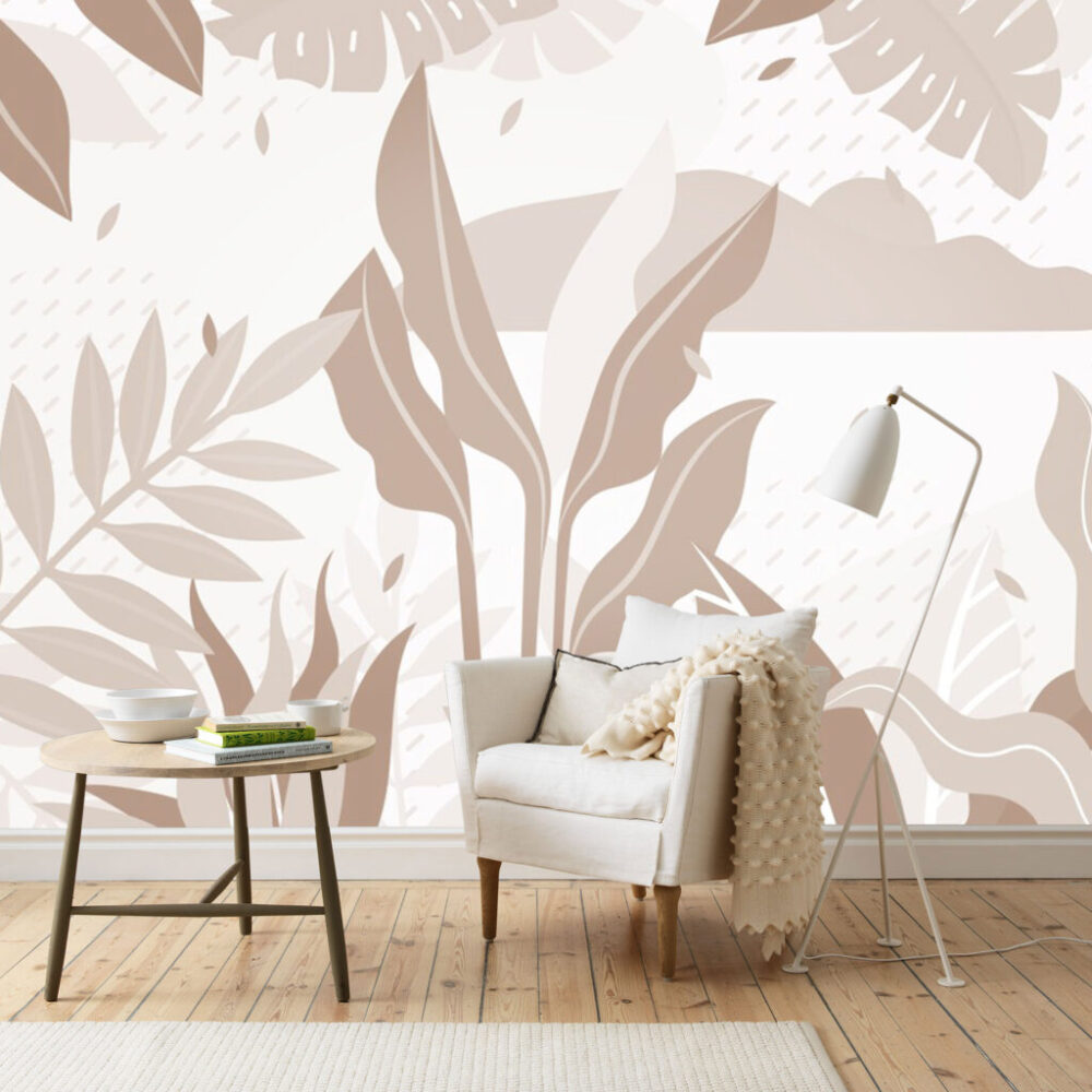 Yapay Yaprak Desenli 3D Duvar Kağıdı