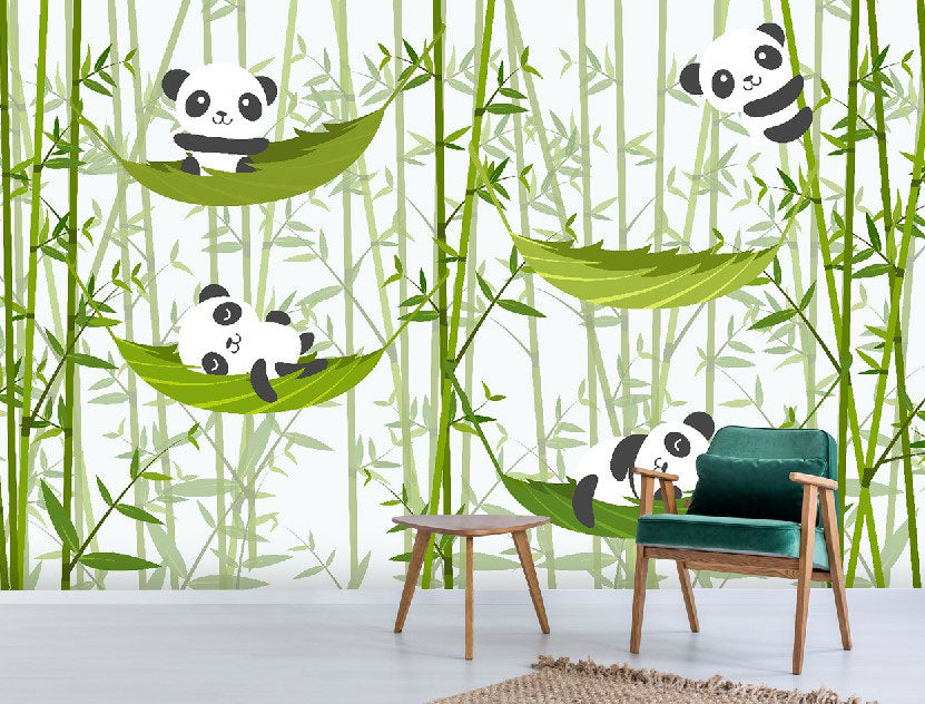 Yaprak Üzerindeki Pandalar Temalı 3D Duvar Kağıdı | Duvar Kağıdı Marketi üretimi, uygulanmasını isteyeceğiniz boyut ve konumuna uygun olarak talepleriniz doğrultusunda size özel imal edilir.