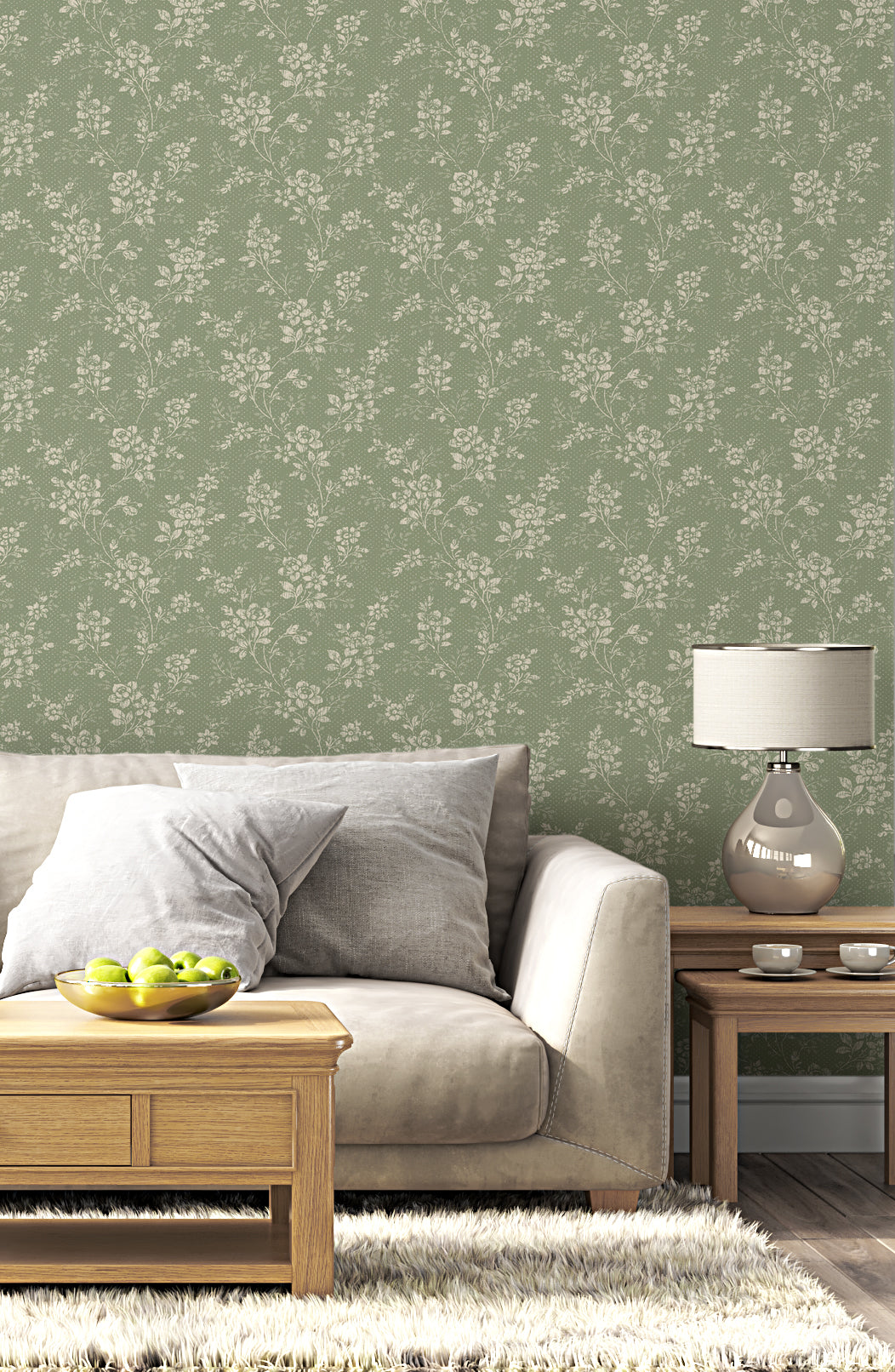 Yeşil Fon Üzerinde Gül Desenli Vintage Duvar Kağıdı Duvar Kağıdı Ürün Bilgisi