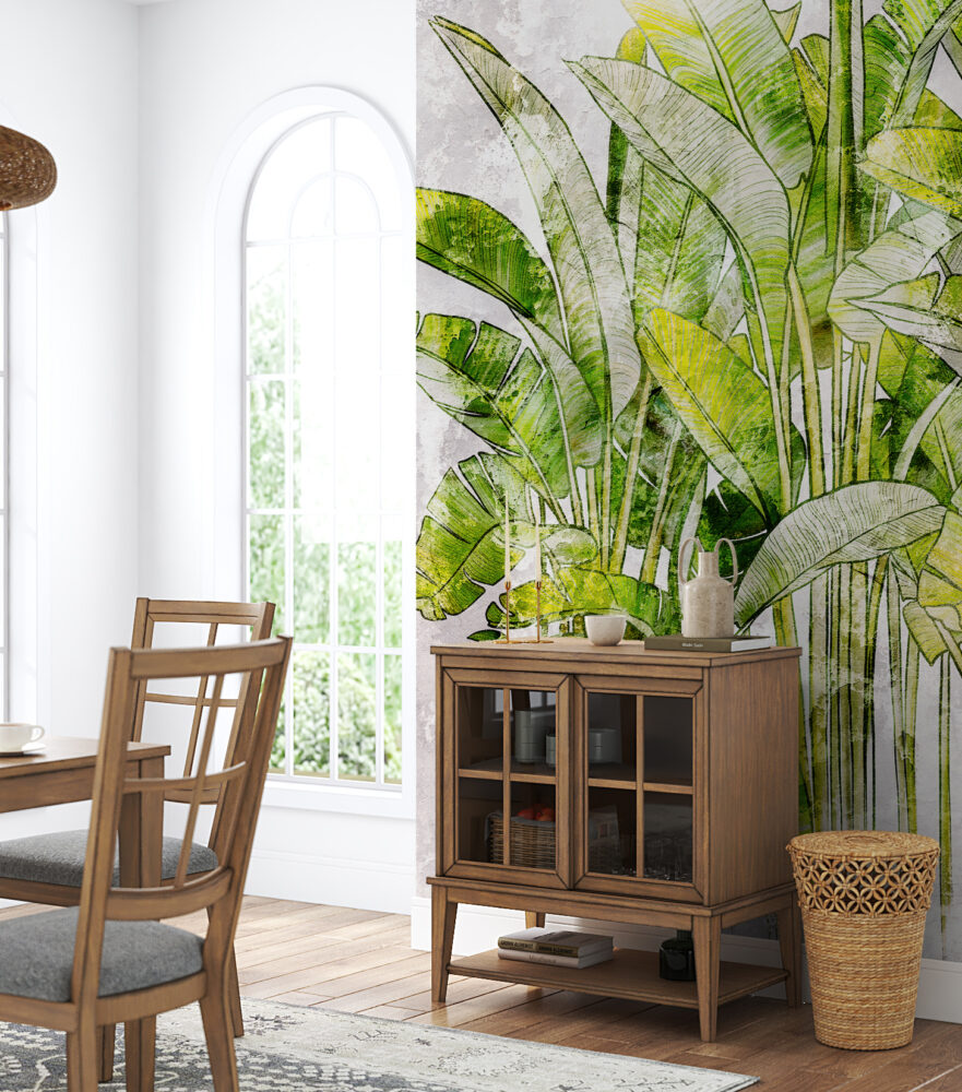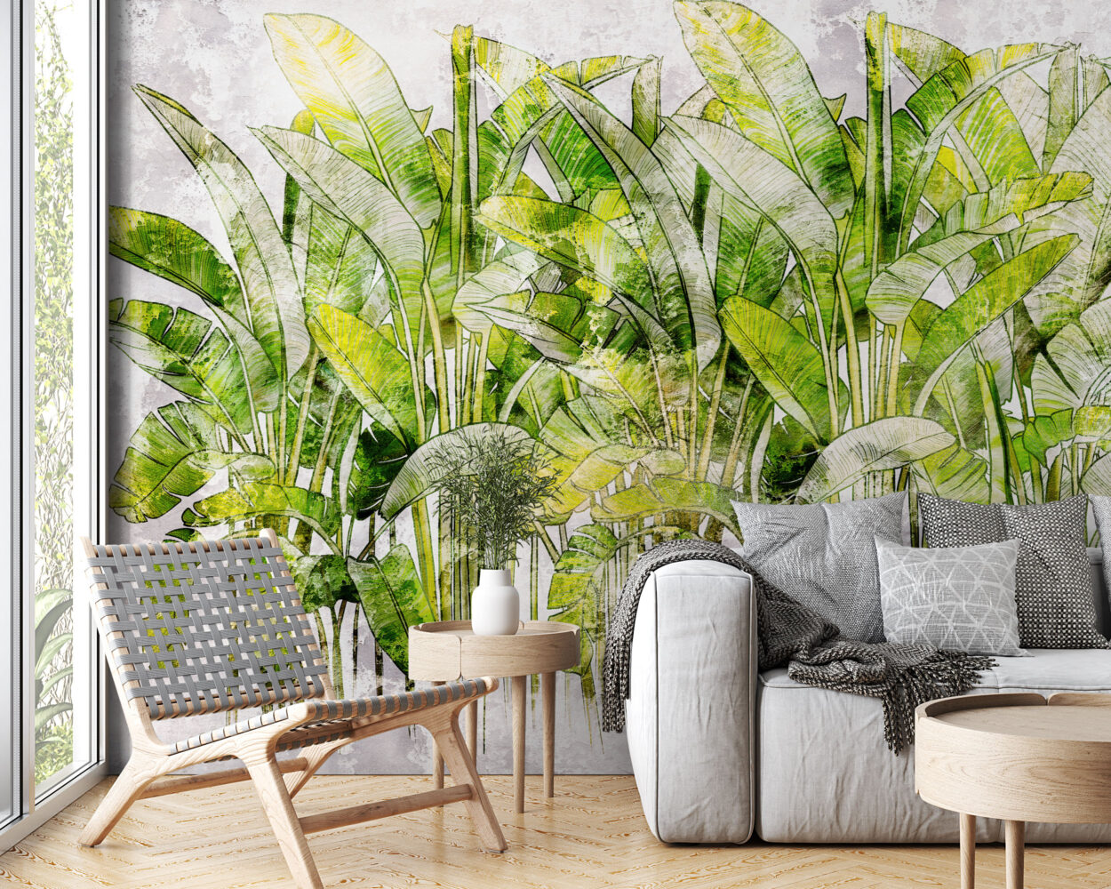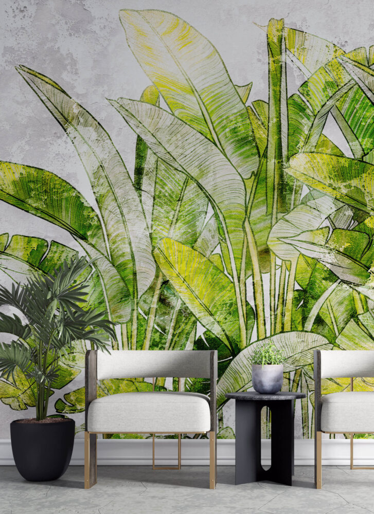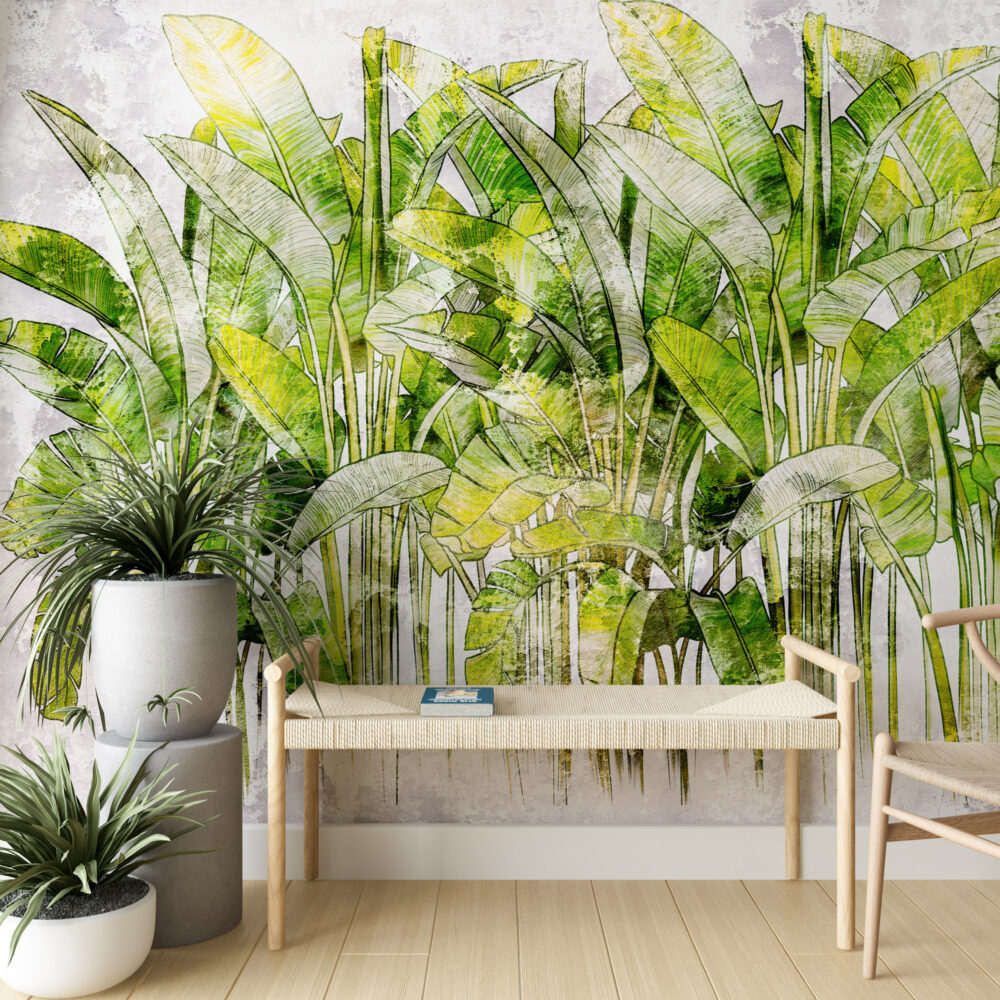 Yeşil Muz Yaprakları Duvar Kağıdı üretimi, uygulanmasını isteyeceğiniz boyut ve konumuna uygun olarak talepleriniz doğrultusunda size özel imal edilir.