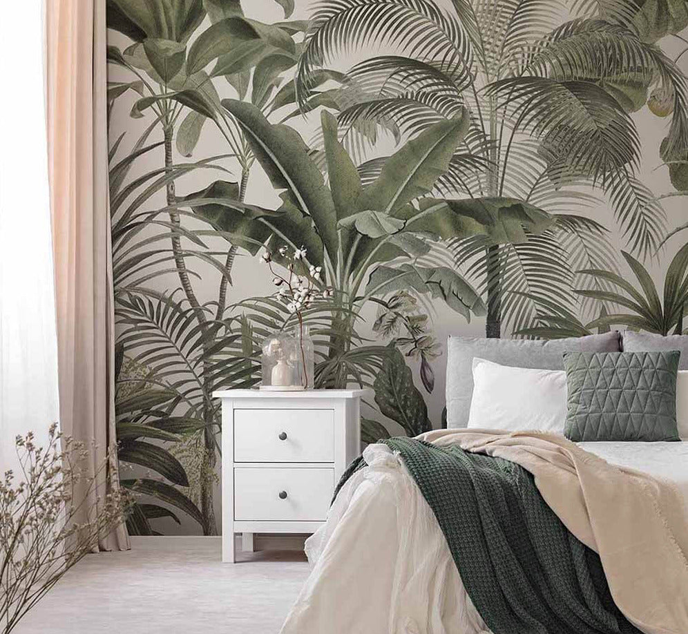 Yeşil Renkli Tropikal Ağaçlı 3D Duvar Kağıdı üretimi, uygulanmasını isteyeceğiniz boyut ve konumuna uygun olarak talepleriniz doğrultusunda size özel imal edilir.