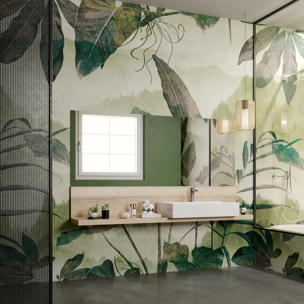 Yeşil Renkli Tropikal Duvar Kağıdı üretimi, uygulanmasını isteyeceğiniz boyut ve konumuna uygun olarak talepleriniz doğrultusunda size özel imal edilir.