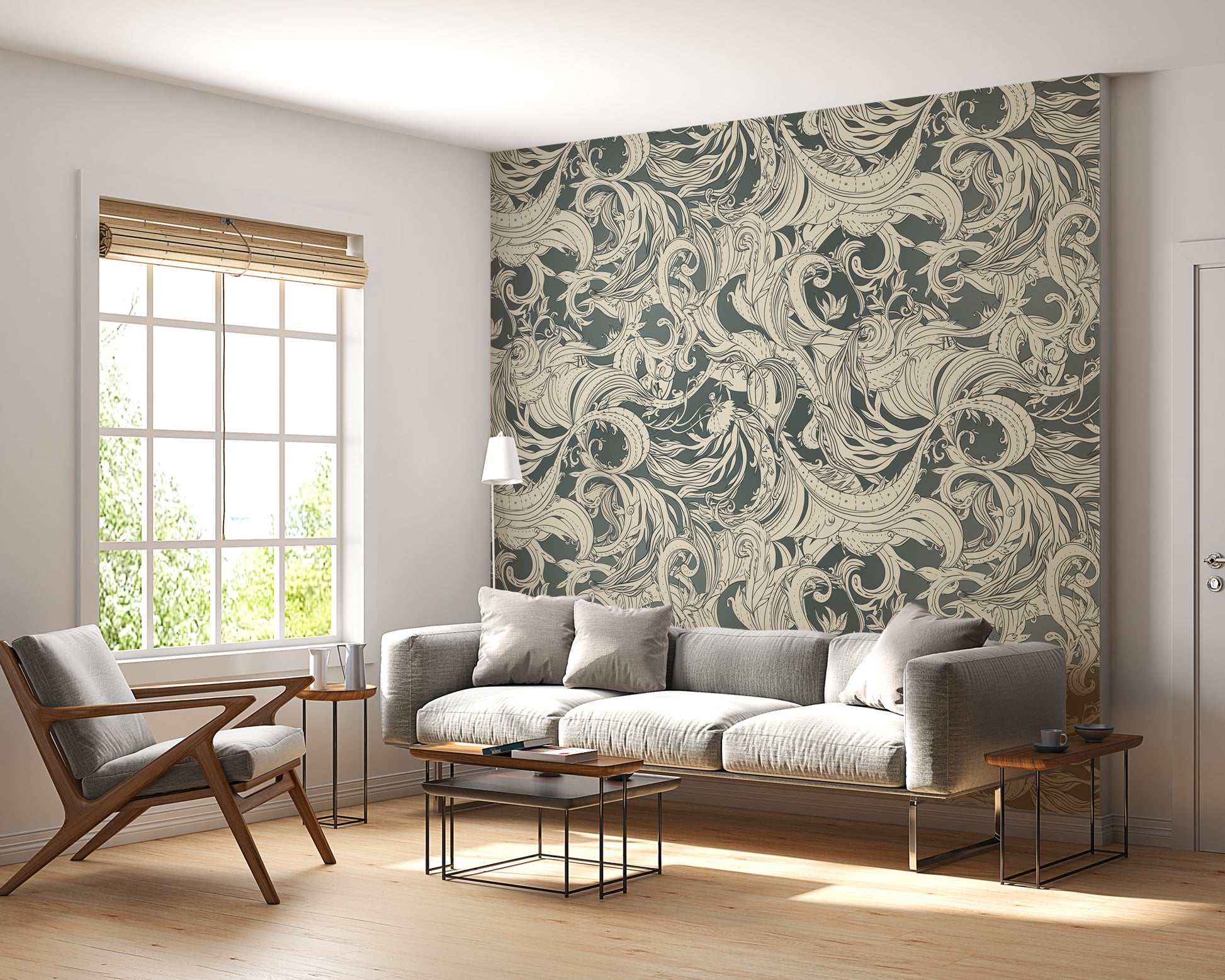 Yeşil Sarmal Desenler Duvar Kağıdı üretimi, uygulanmasını isteyeceğiniz boyut ve konumuna uygun olarak talepleriniz doğrultusunda size özel imal edilir.