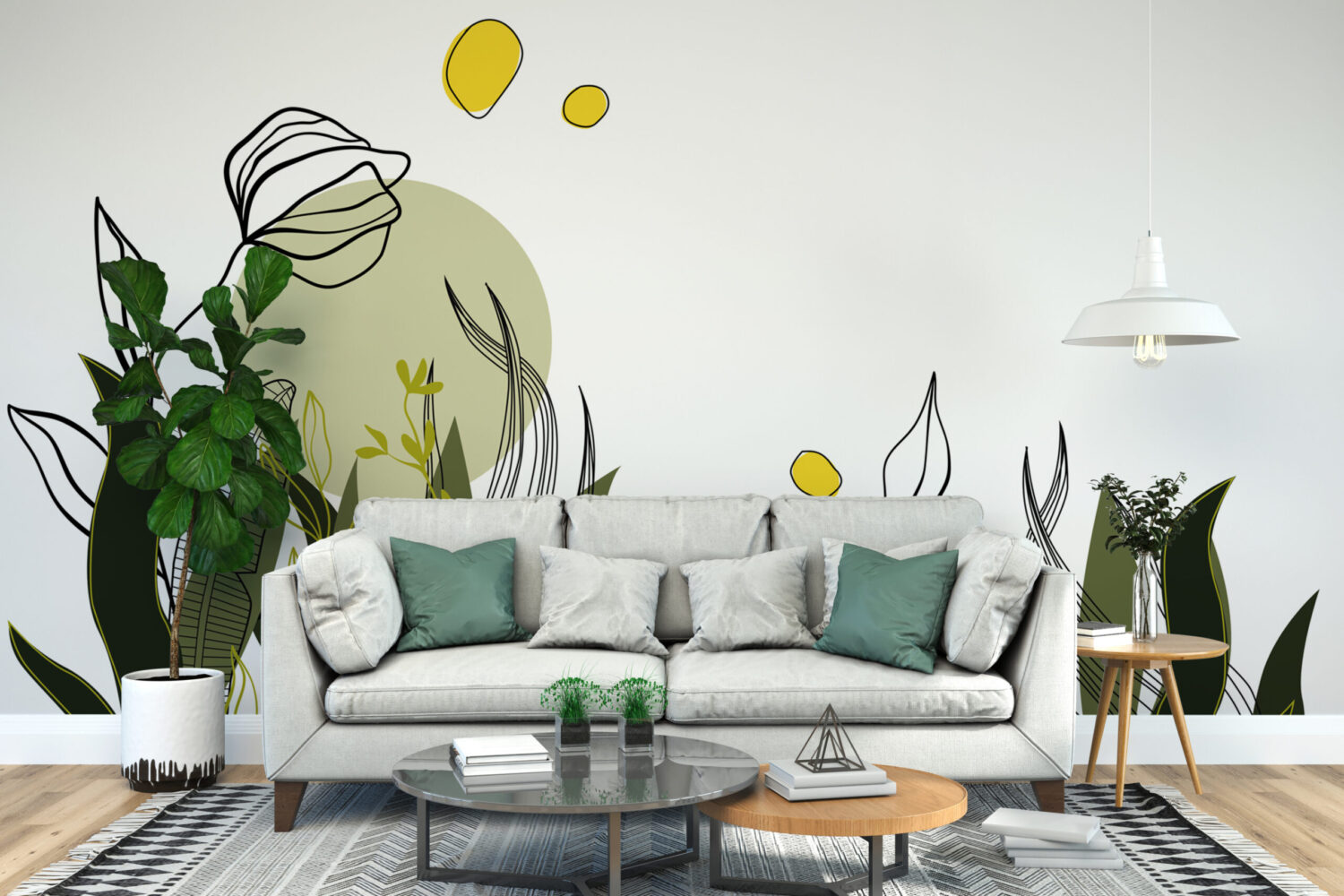 Yeşil Tonlar'da Çizgisel Çicek Ve Yapraklar Duvar Kağıdı Duvar Kağıdı Ürün Bilgisi