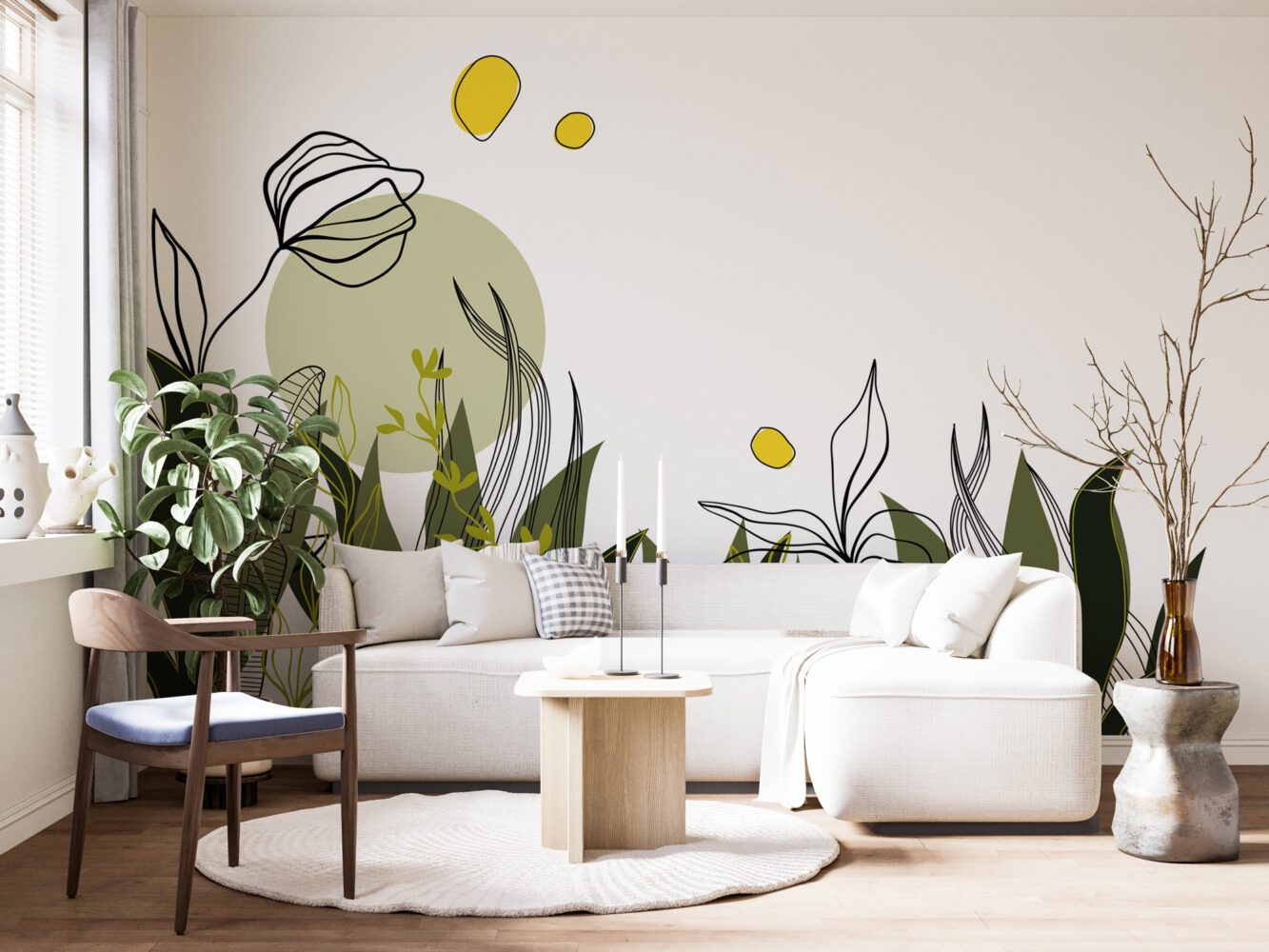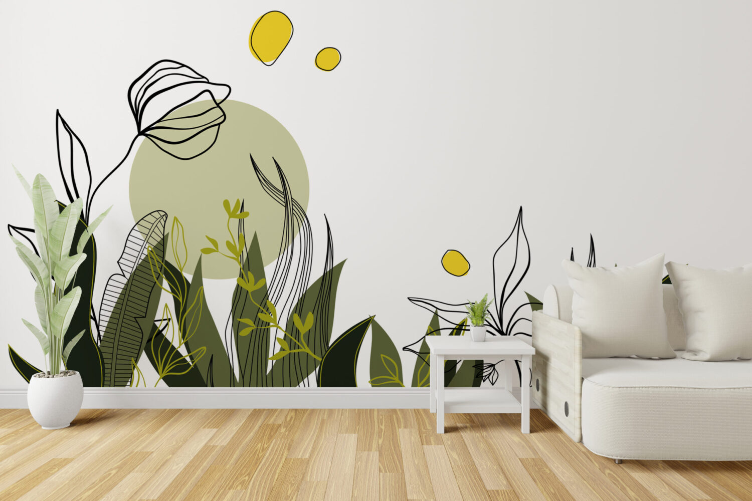 Yeşil Tonlar'da Çizgisel Çicek Ve Yapraklar Duvar Kağıdı üretimi, uygulanmasını isteyeceğiniz boyut ve konumuna uygun olarak talepleriniz doğrultusunda size özel imal edilir.