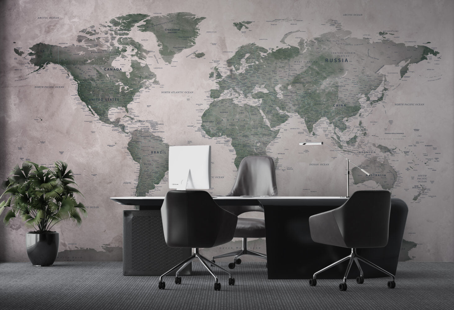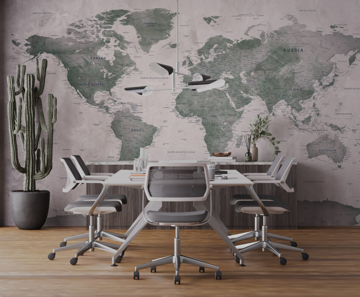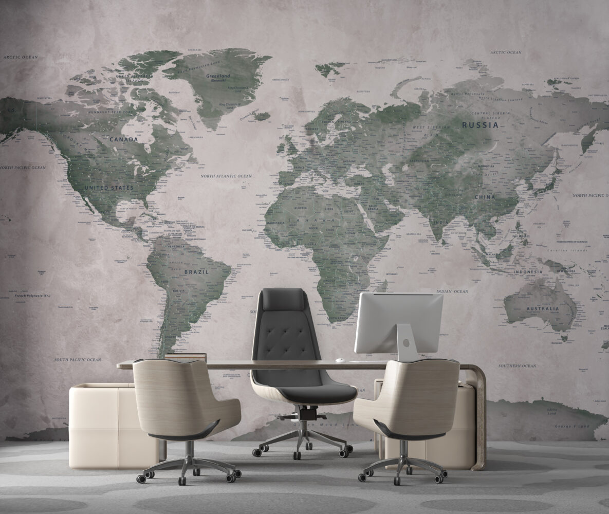 Yeşil Tonlarda Harita Duvar Kağıdı Duvar Kağıdı Ürün Bilgisi