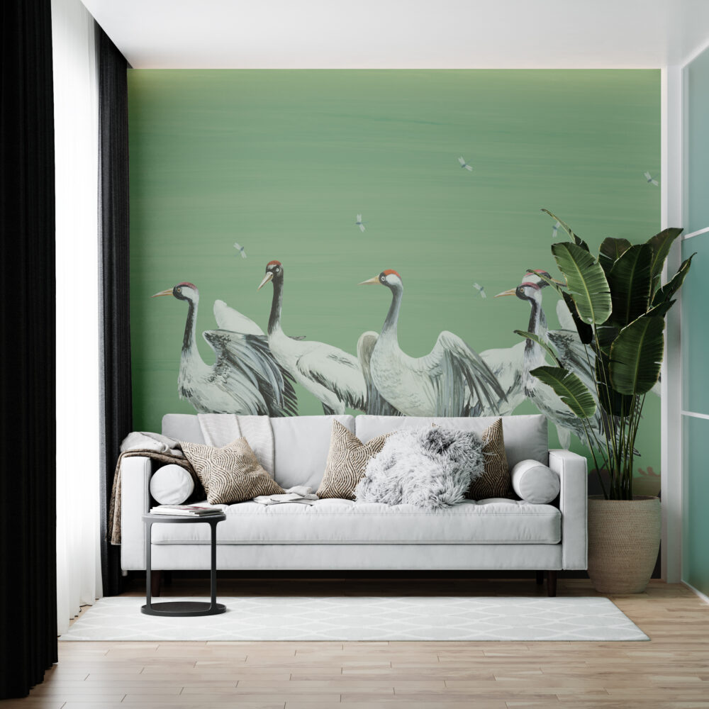 Yeşil Zemin'li Turna Kuşu 3D Duvar Kağıdı Duvar Kağıdı Ürün Bilgisi