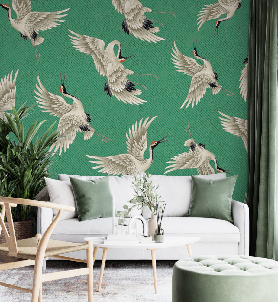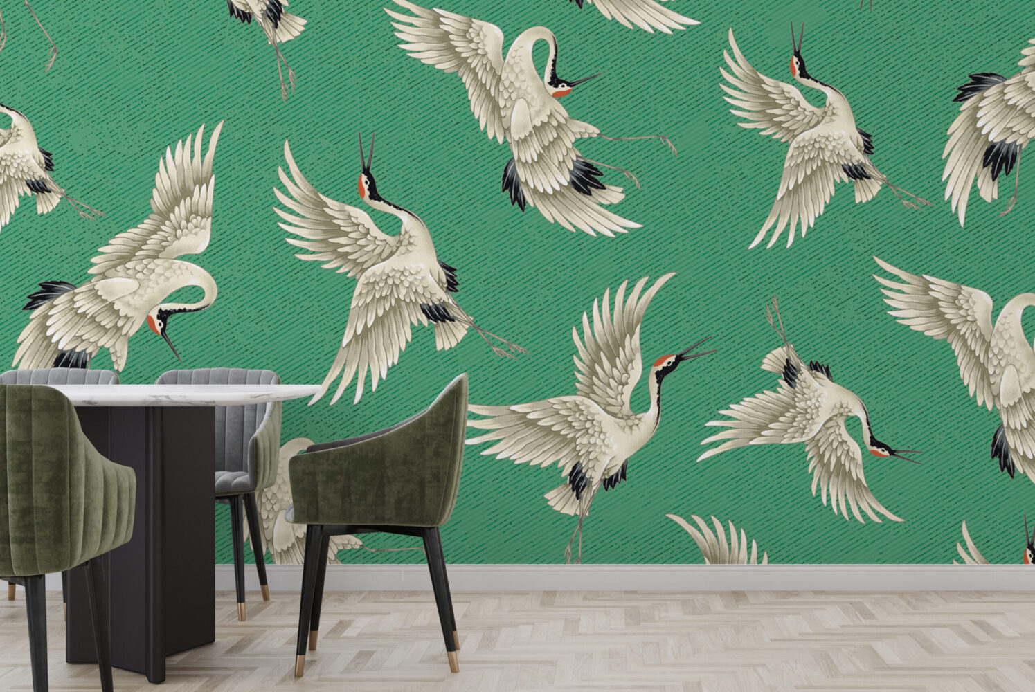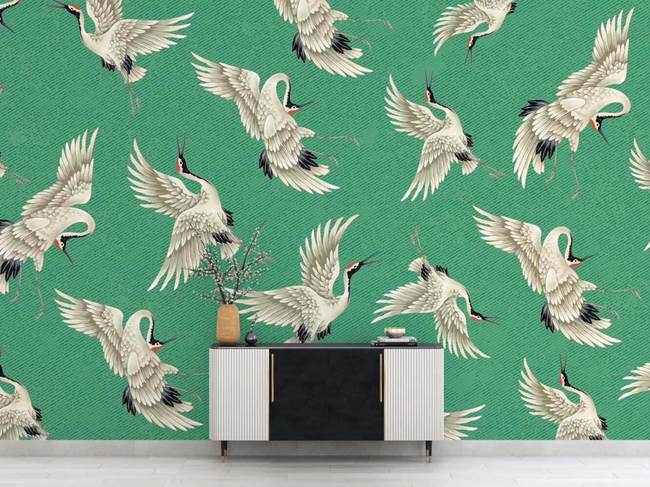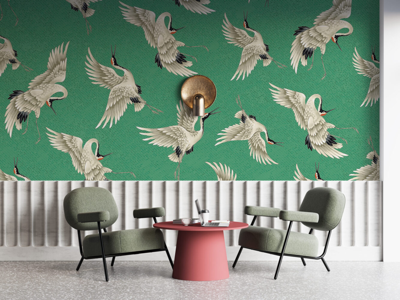 Yeşil Zemin'li Uçan Kuşlar 3D Duvar Kağıdı Duvar Kağıdı Ürün Bilgisi