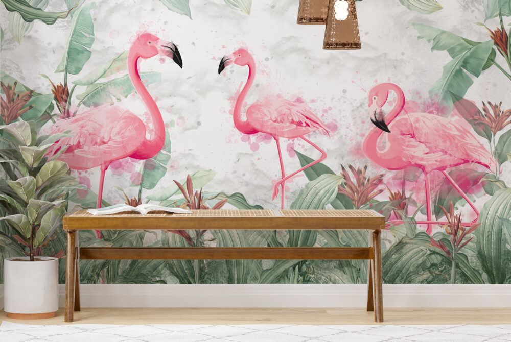 Yeşillerin İçindeki Flamingo Desenli 3D Duvar Kağıdı üretimi, uygulanmasını isteyeceğiniz boyut ve konumuna uygun olarak talepleriniz doğrultusunda size özel imal edilir.