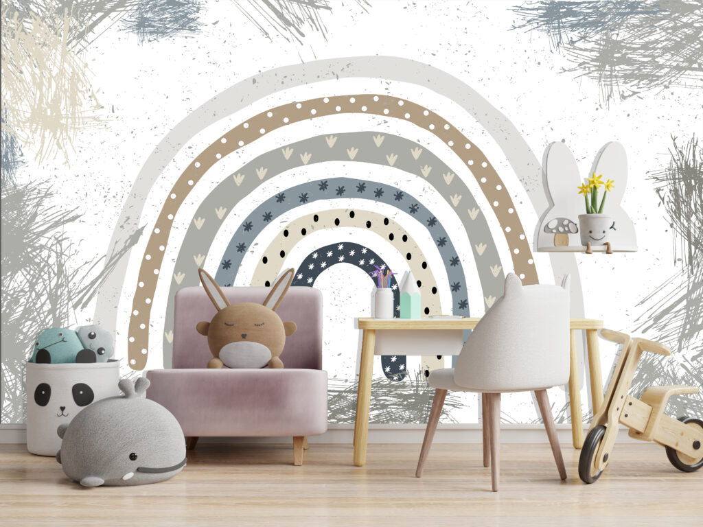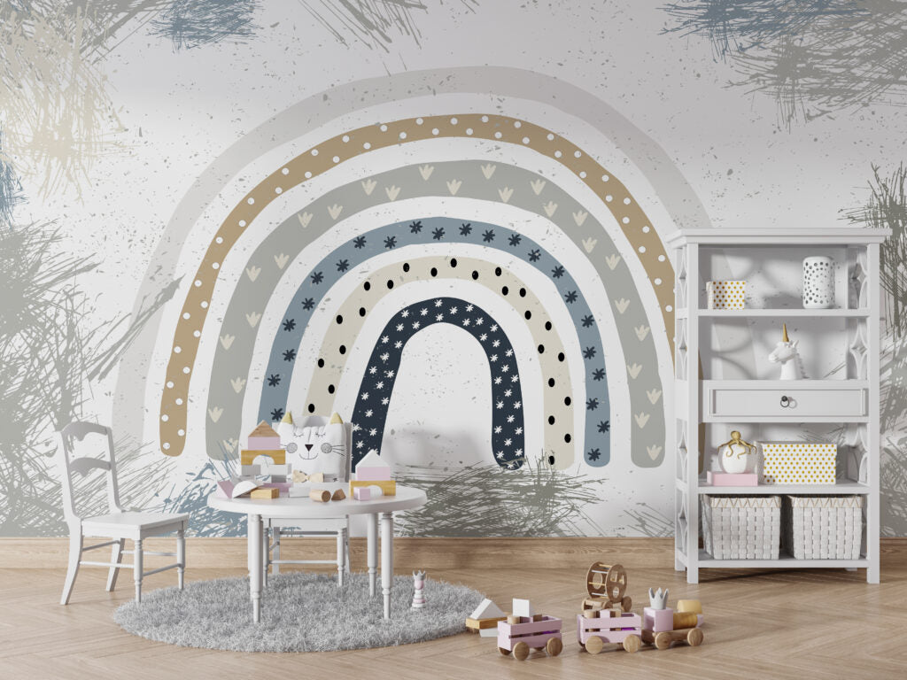 Yıldızlı Ve Kalpli Gökkuşağı Desenli 3D Duvar Kağıdı
