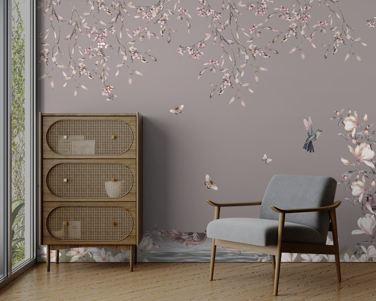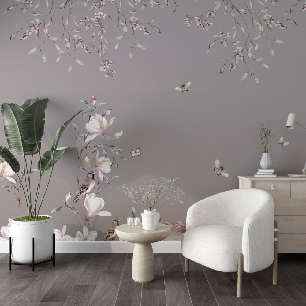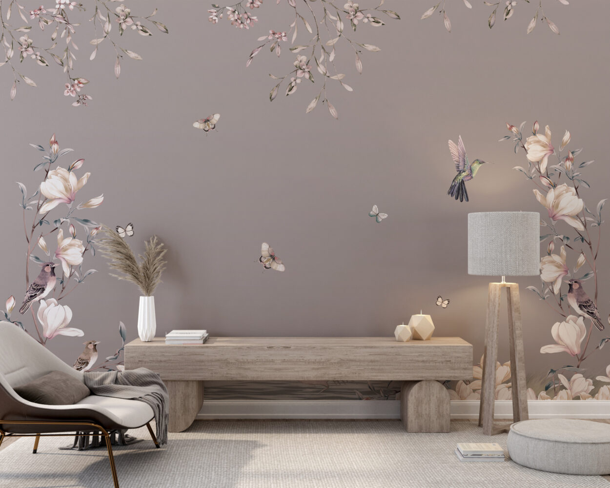 Yukarıdan Sarkan Çiçekler ve Sülün Kuşları Duvar Kağıdı Duvar Kağıdı Ürün Bilgisi