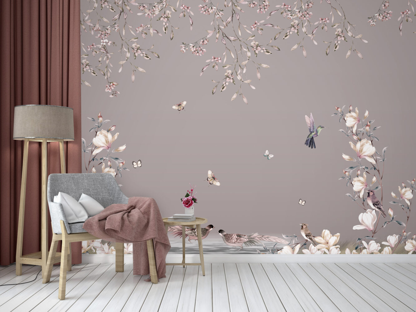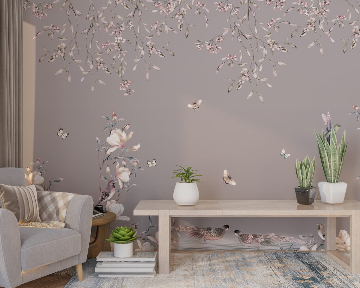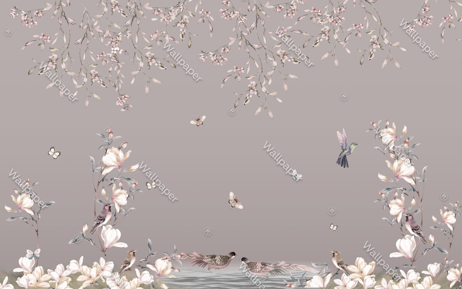 Yukarıdan Sarkan Çiçekler ve Sülün Kuşları Duvar Kağıdı üretimi, uygulanmasını isteyeceğiniz boyut ve konumuna uygun olarak talepleriniz doğrultusunda size özel imal edilir.