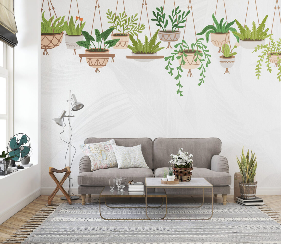 Yukarı'dan Sarkan Saksılar Duvar Kağıdı | Duvar Kağıdı Marketi üretimi, uygulanmasını isteyeceğiniz boyut ve konumuna uygun olarak talepleriniz doğrultusunda size özel imal edilir.