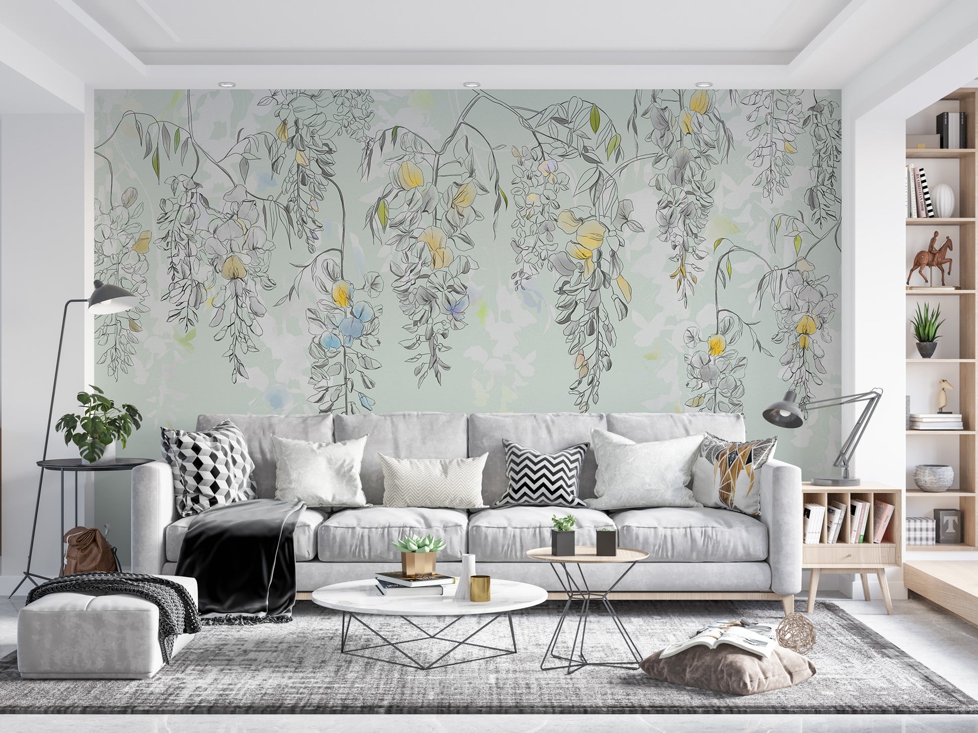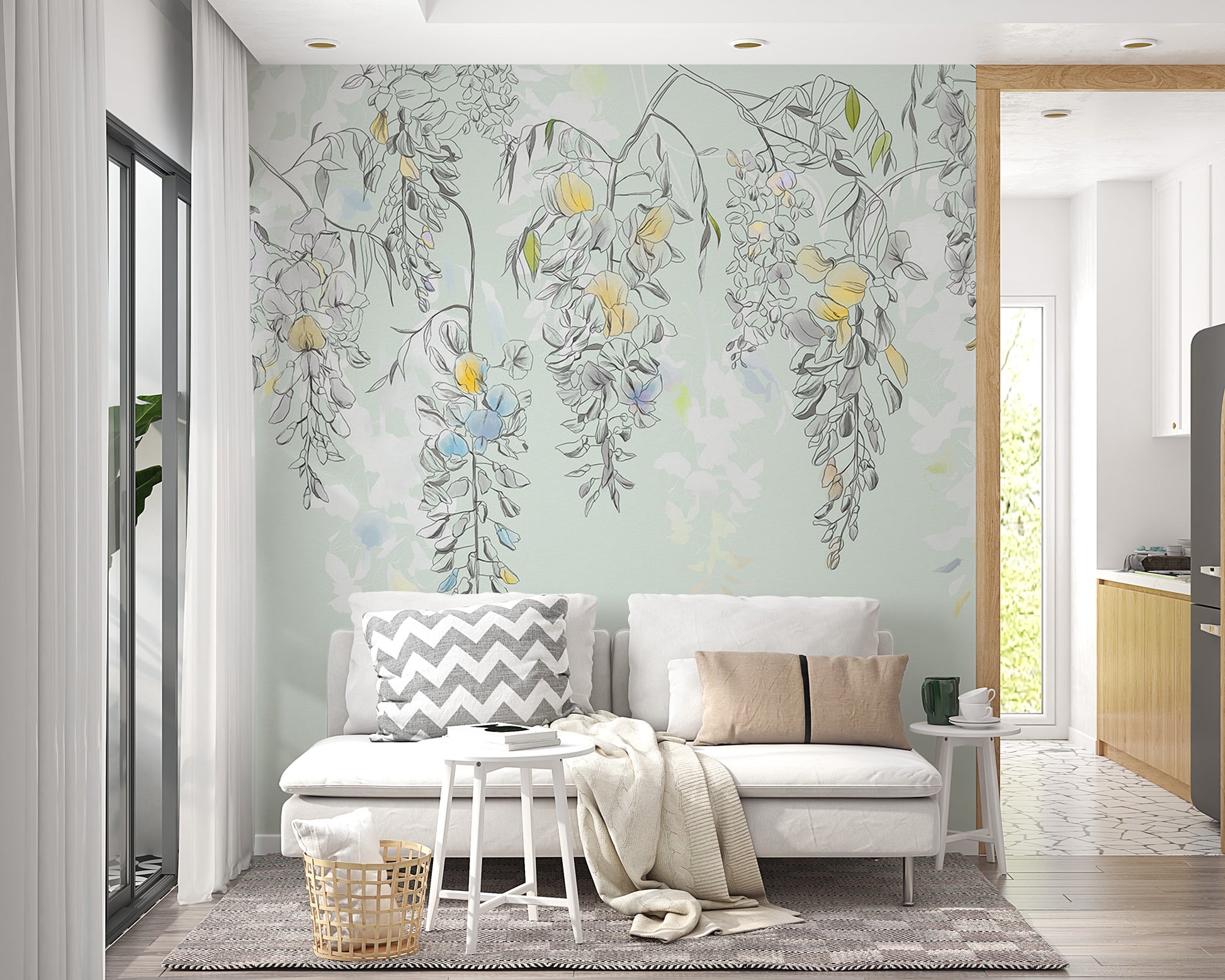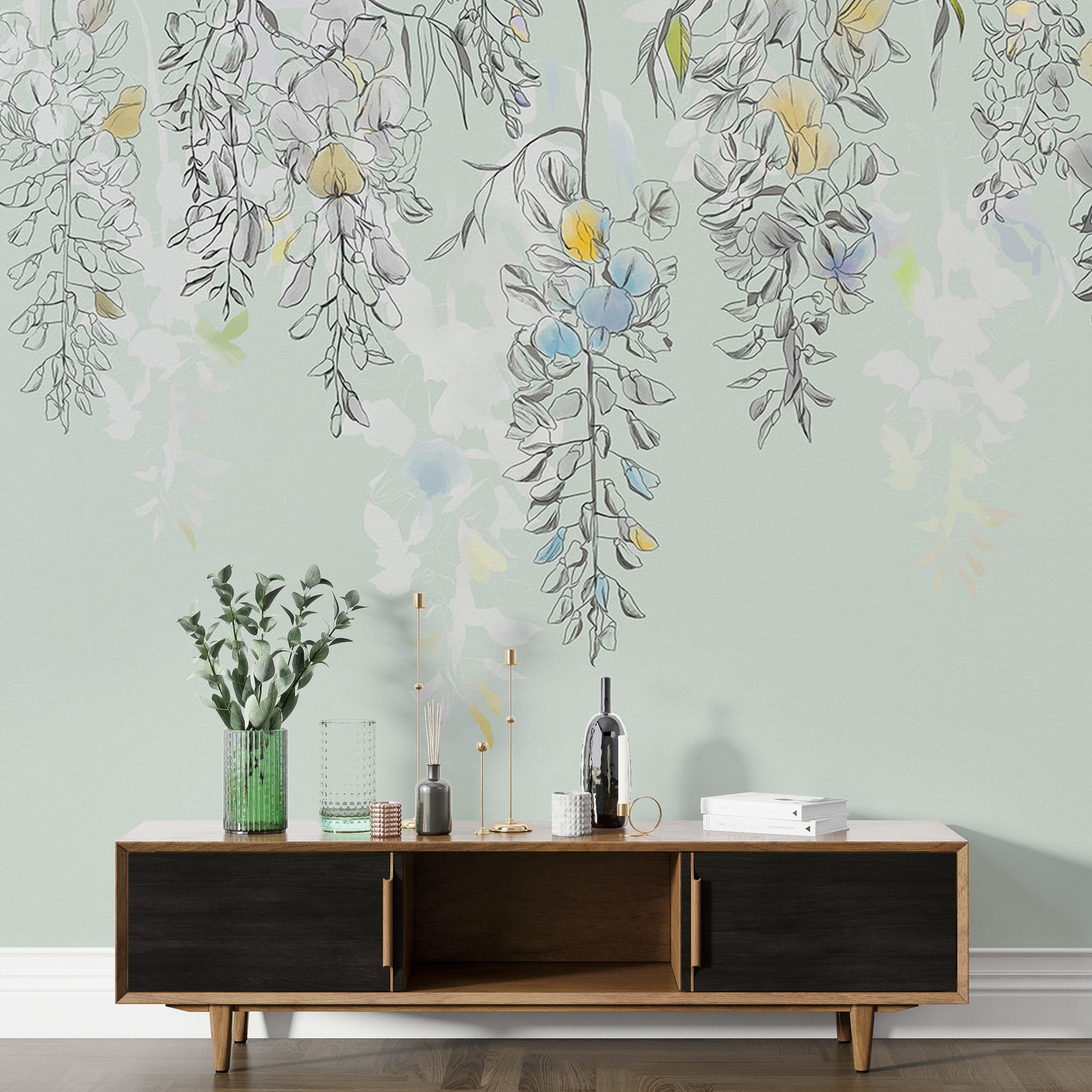 Yukarıdan Sarkan Salkım Çiçekler Duvar Kağıdı üretimi, uygulanmasını isteyeceğiniz boyut ve konumuna uygun olarak talepleriniz doğrultusunda size özel imal edilir.