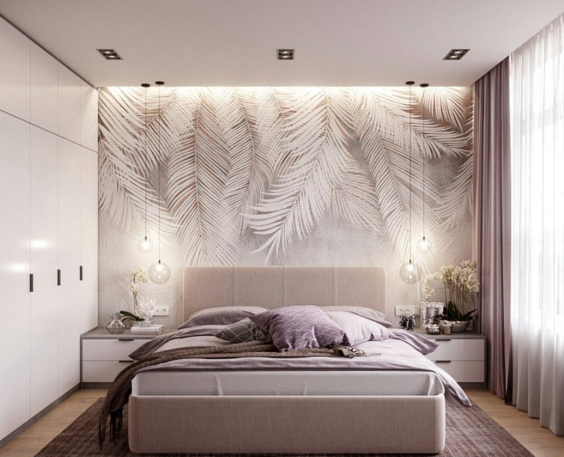 Yukarıdan Sarkıtılmış Beyaz Yapraklar 3D Duvar Kağıdı
