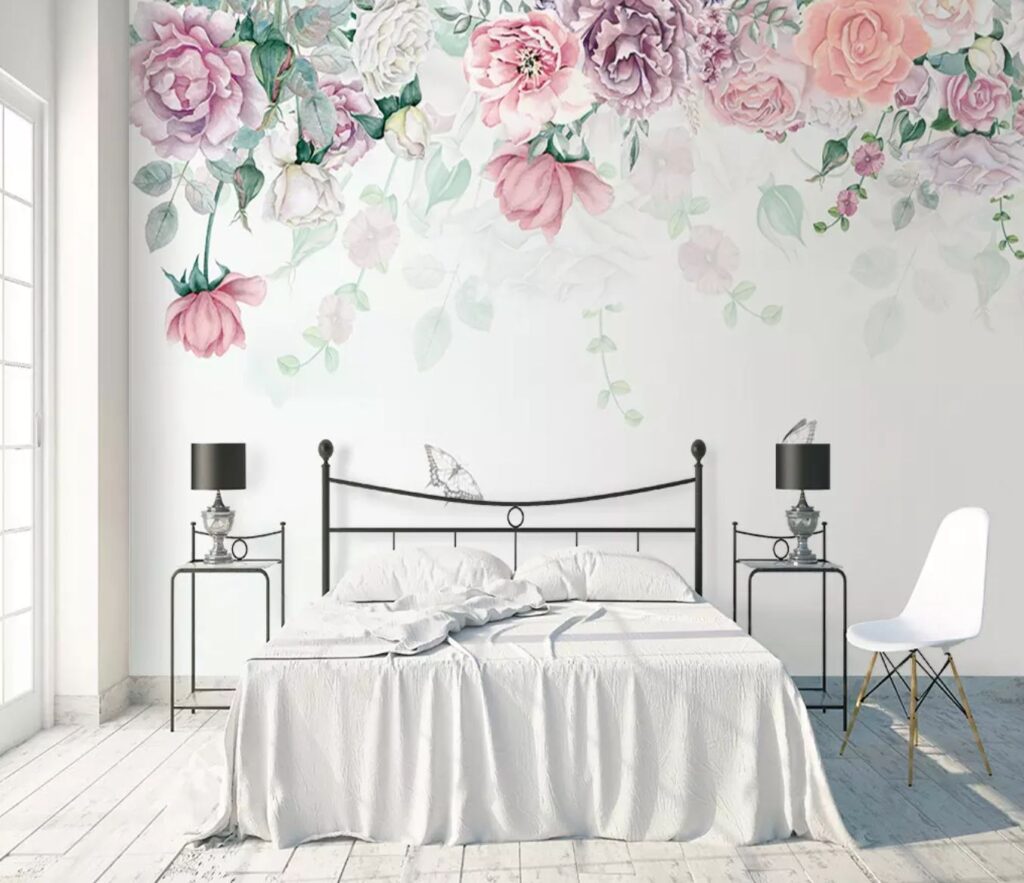 Yukarıdan Sarkıtılmış Gül Desenli Pembe Renkli 3D Duvar Kağıdı