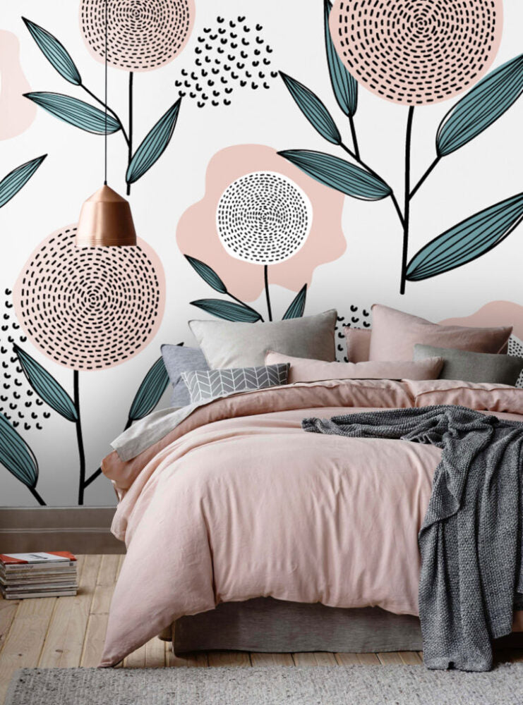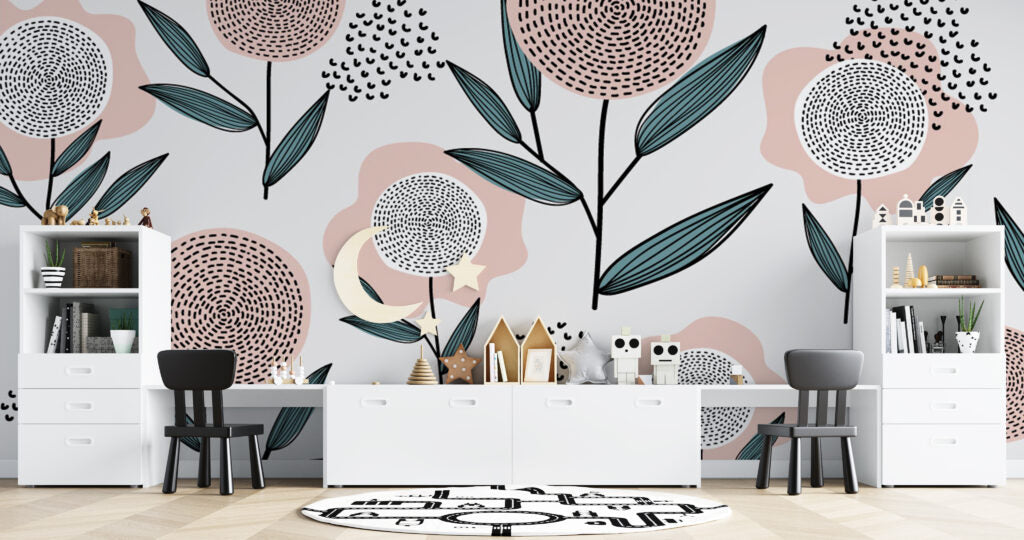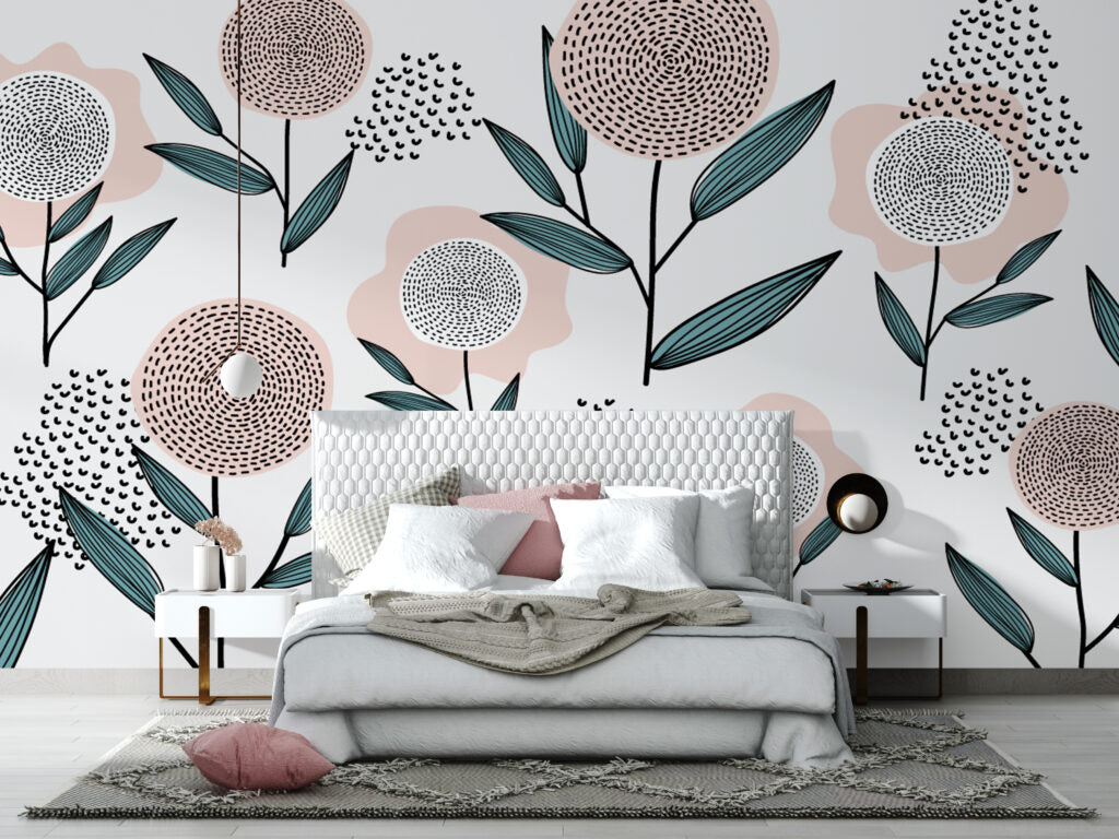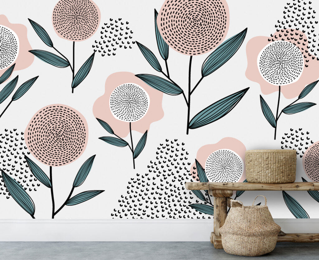 Yuvarlak Çiçek Desenli 3D Duvar Kağıdı