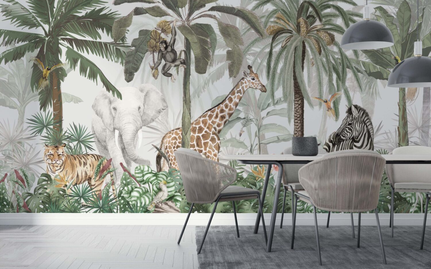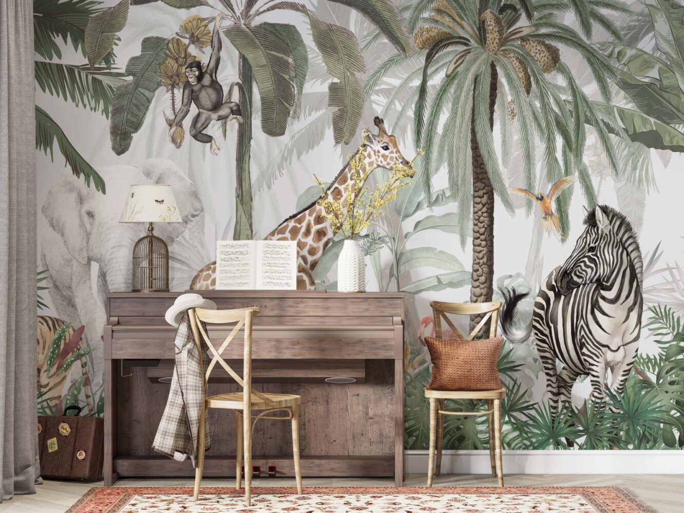 Zürafa ve Zebralı Safari Görünümlü Duvar Kağıdı